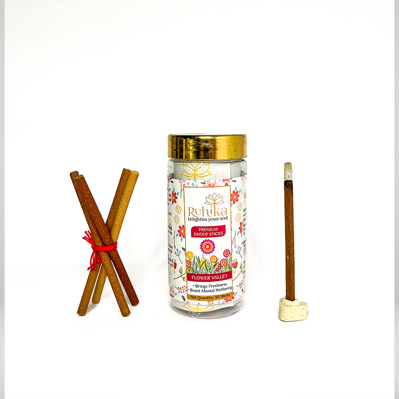 Flower Valley Dhoop is a bouquet of floral aromas reminiscent of a garden in full bloom. With its sweet, fresh, and powdery notes, this fragrance uplifts the mood and creates a festive, devotional atmosphere. Flowers have always held a sacred place in Indian culture, offered to deities as symbols of purity, beauty, and devotion. In Ayurveda, floral scents are believed to open the heart chakra, nurturing love, compassion, and positivity. Lighting Flower Valley during poojas, celebrations, or daily rituals fills the air with freshness and divine charm, uplifting both the soul and environment. It is particularly suitable for temple offerings and joyous gatherings, where fragrance is used to welcome divine grace.